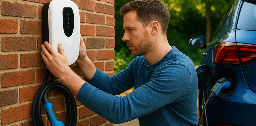 Wallboxes (Fixos): Instalam-se permanentemente na parede e são a solução mais comum para residências (7,4 kW), otimizando a recarga diária.